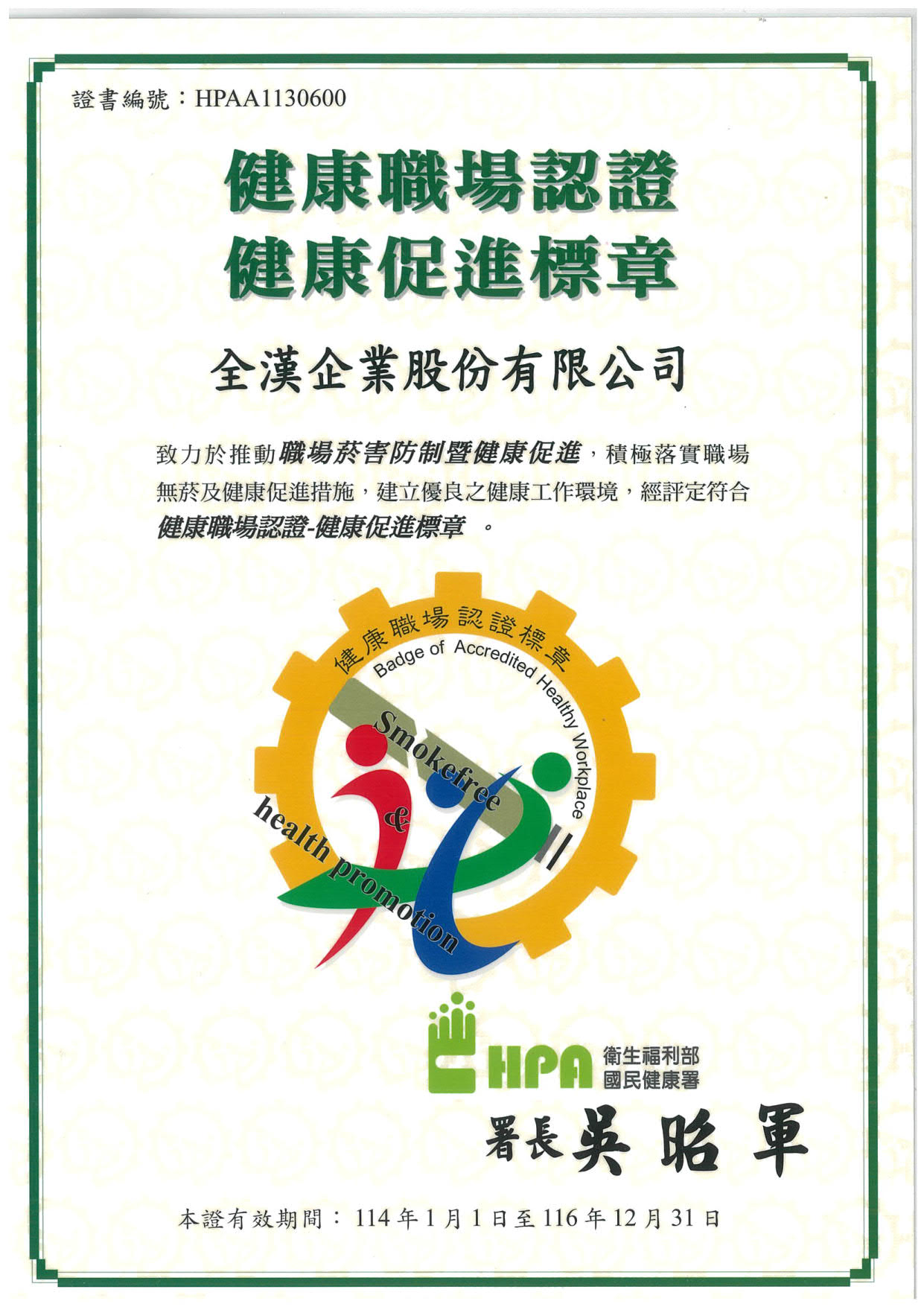 全漢致力推動人本健康文化,2024 年入選桃園市《疼惜桃園勞工》月刊女性友善職場專欄,並受《公視-活力企業,員工動起來》與《商業周刊-一個人運動,不如一群人一起動》專訪,分享打造健康職場的實踐經驗;同年亦榮獲體育署「運動企業認證」及國健署「健康職場認證-健康促進標章」,充分展現運動文化深耕成果,體現健康職場理念與永續價值。